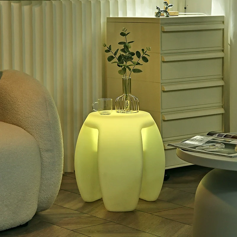 This is a set of LED cylindrical table and stool combinations suitable for indoor and outdoor leisure scenes, made of PE material and equipped with IP65 waterproof LED wicks. The table and chair support independent RGB full-color dimming, and can switch between various light effect modes such as gradient and breathing. At the same time, they are equipped with a charging/plug-in dual power supply solution, and the single device can last for more than 10 hours. The streamlined integrated design combines design and practicality, with a scratch resistant and spill resistant surface that is suitable for placing drinks and meals. It not only meets the needs of leisure use, but also serves as a spatial atmosphere device to enhance the texture of the scene.