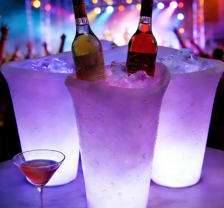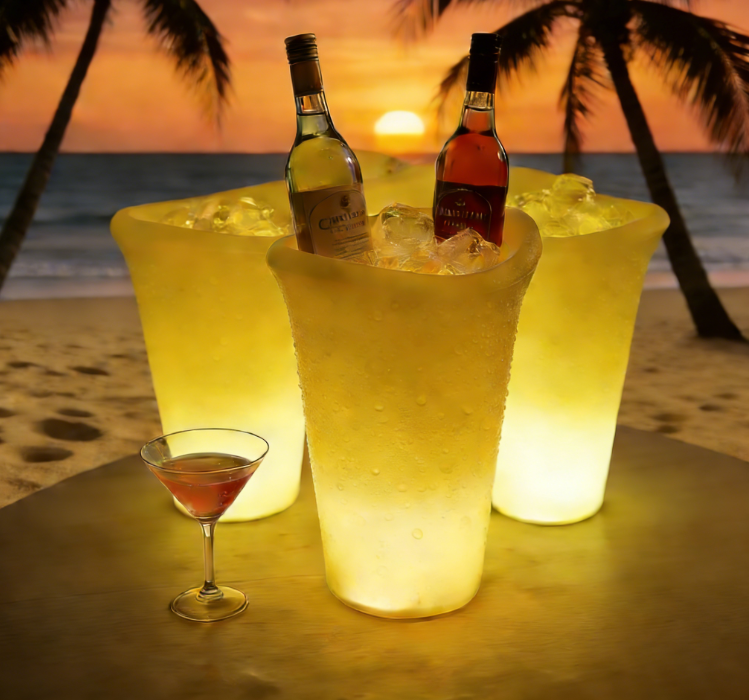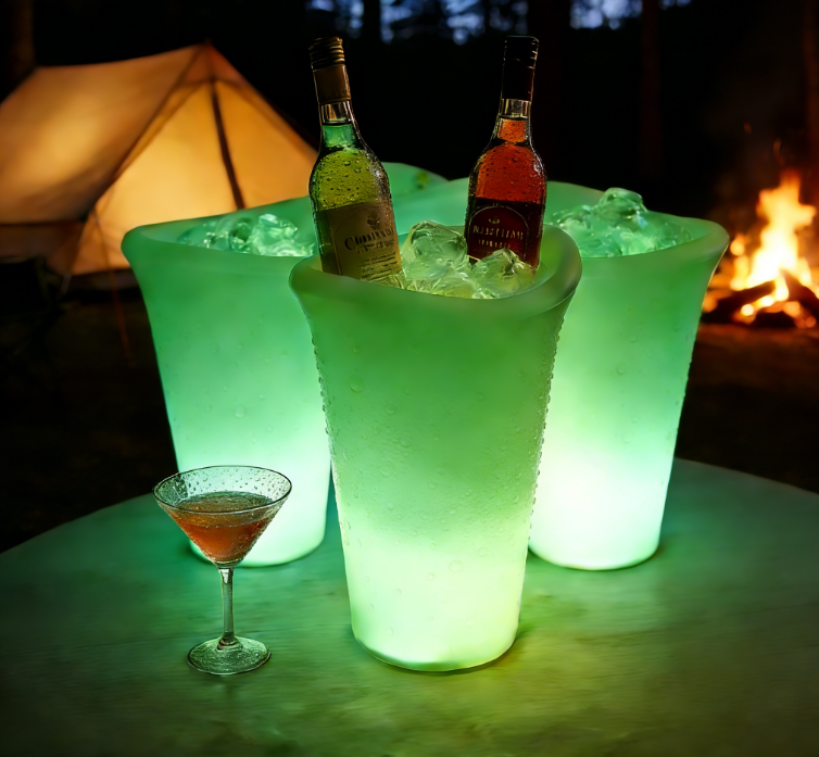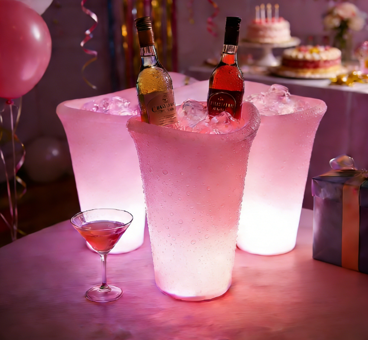 Colorful glow bucket can hold wine bottles, cans, beer, or champagne bottles. IP68 durable waterproof and portable, color changing LED bucket lights. Make any occasion more festive. This LED illuminated pool patio and deck ice bucket. Perfect for indoor-outdoor bars, celebrations, barbecues, picnics, all parties or events.