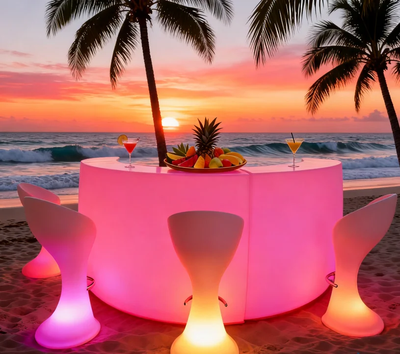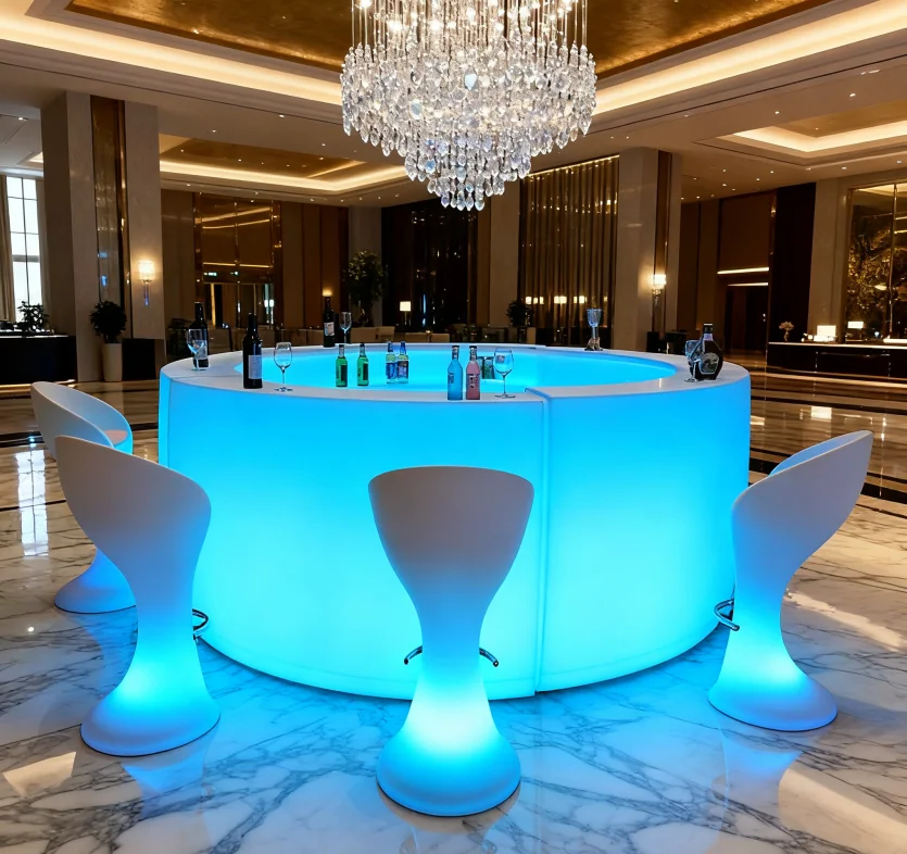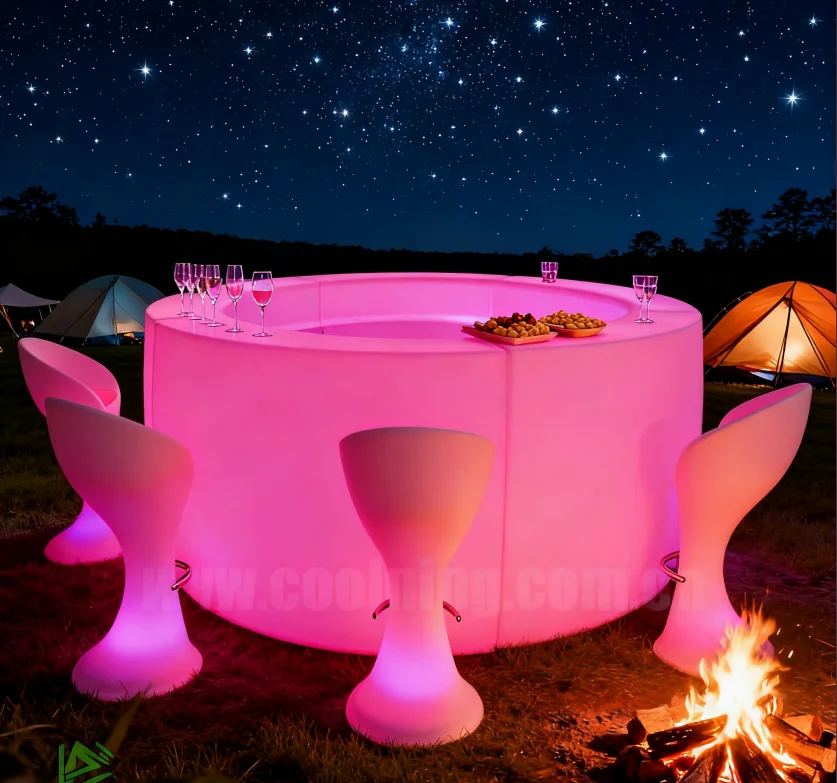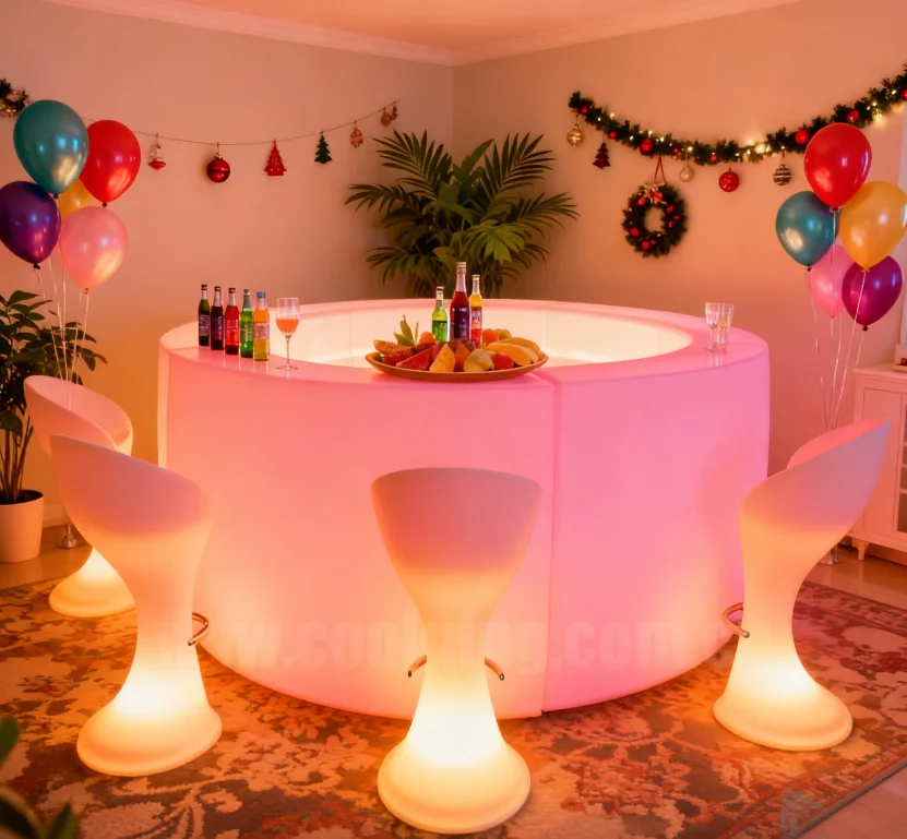 As lights shift hues with your mood, this rounded bar counter becomes a "vibe creator" for any space—whether it’s a cozy nook for late-night solo drinks or the social core of a party. This smart LED-lit cylindrical bar features a minimalist, rounded design that fits any setting: its built-in adjustable LED system offers 16colors and brightness levels (warm light softens dinners; cool light amps up parties); made of lightweight yet durable eco-plastic, it works seamlessly for rooftop sunset cocktails or living room gatherings; the multi-purpose countertop doubles as a bartending station and communal table, wrapping every get-together in atmospheric glow.