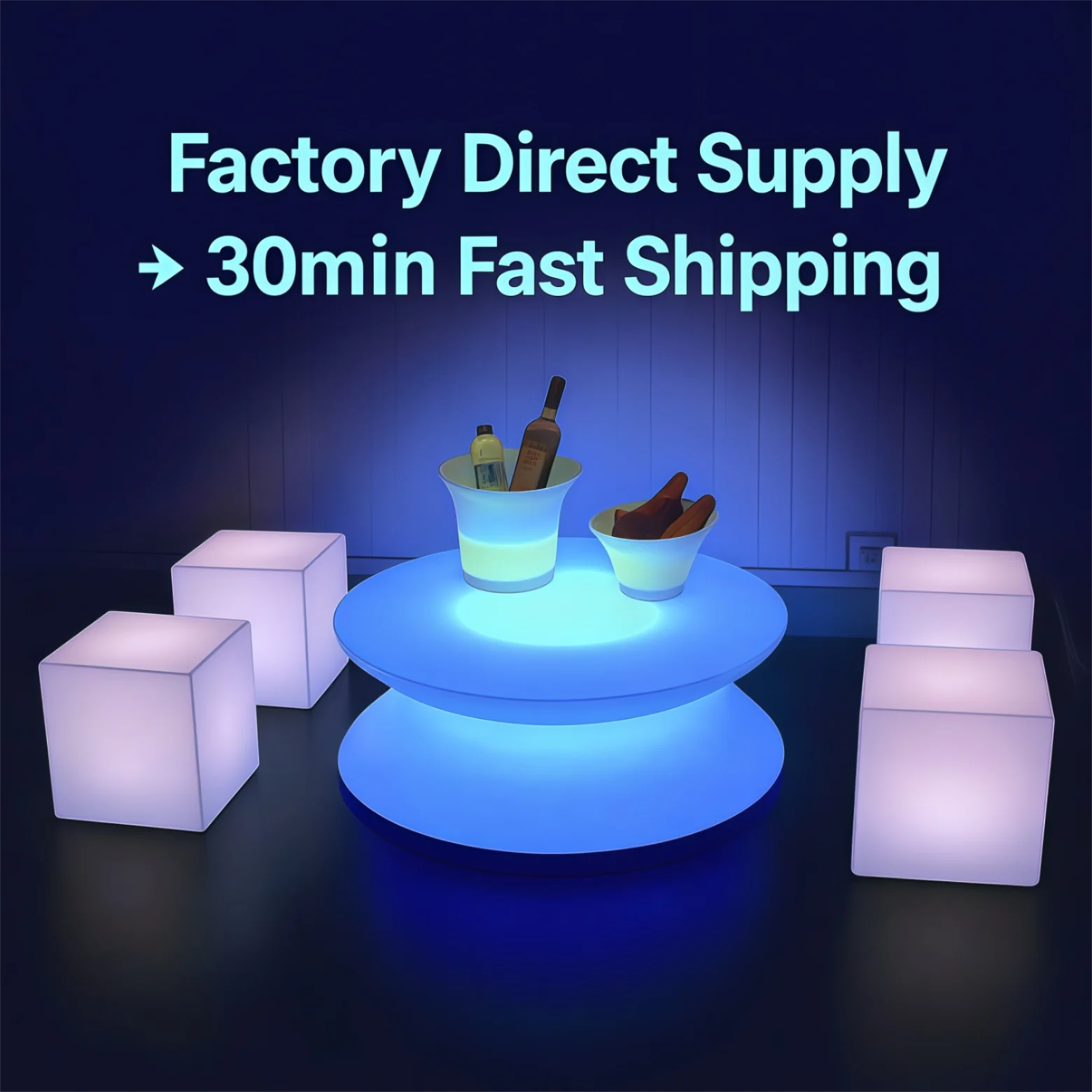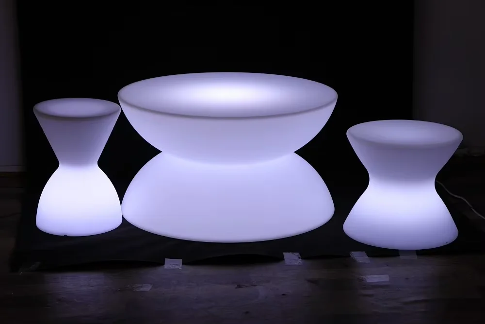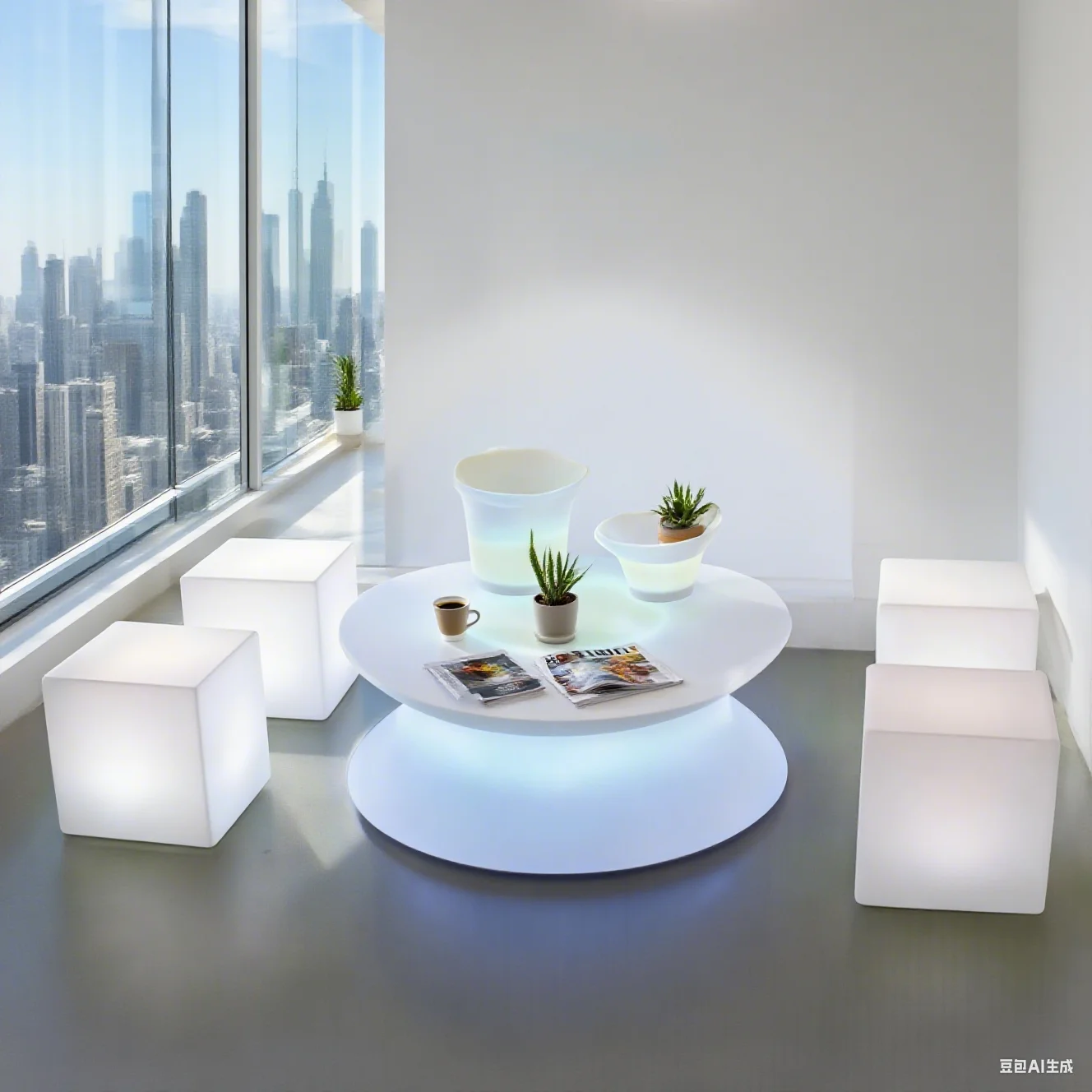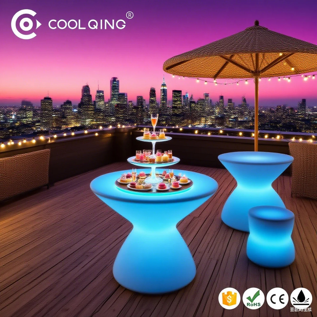 Შიდა ან გარე გამოყენების მომბულიანი ავეჯის LED ბარის, ყავის, პლასტმასის მომბულიანი მაგიდა