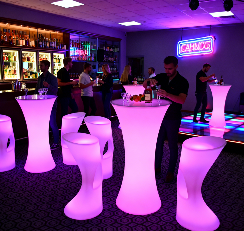 Entertainment venues: bars KTV、 Nightclubs, clubs, etc., serve as bar seats or loose seating, with colorful lighting to create a dynamic atmosphere.