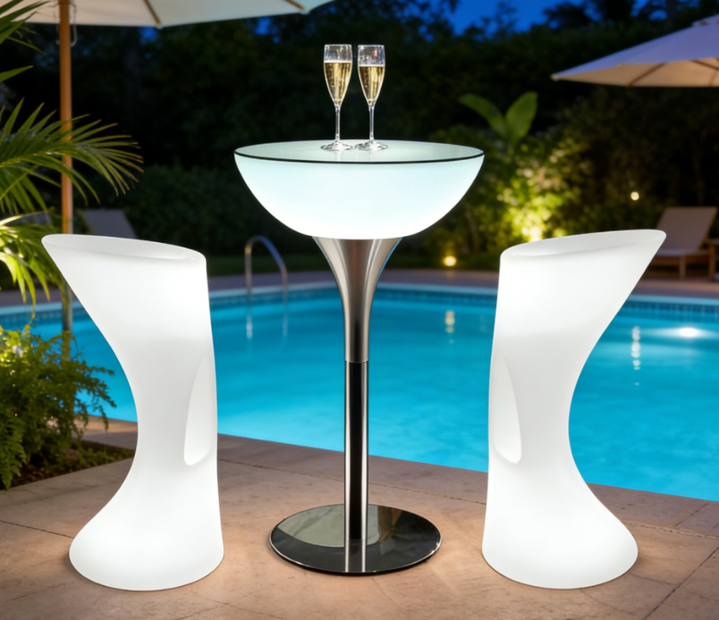 Q2. Is the LED Light-up Bar Chair safe to use around pools or wet areas?