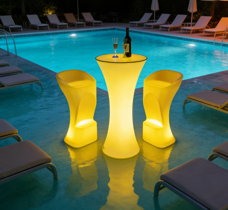 Q2. Is the LED Light-up Bar Chair safe to use around pools or wet areas?