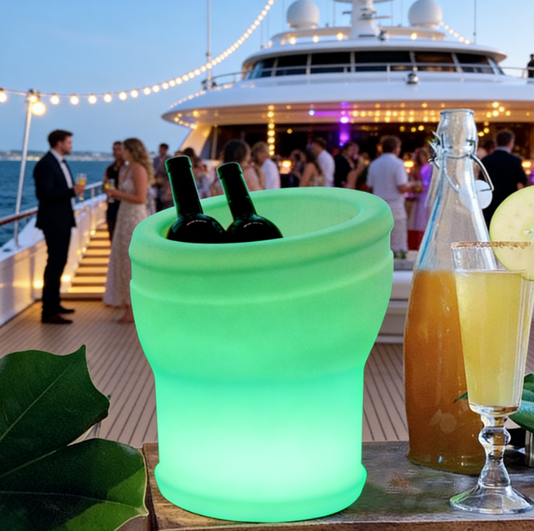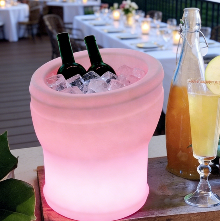 Colorfuldeco glow bucket can hold wine bottles, cans, beer, or champagne bottles. Durable waterproof and portable, color changing LED bucket lights. Make any occasion more festive. This LED illuminated pool patio and deck ice bucket. Perfect for indoor-outdoor bars, celebrations, barbecues, picnics, all parties or events.