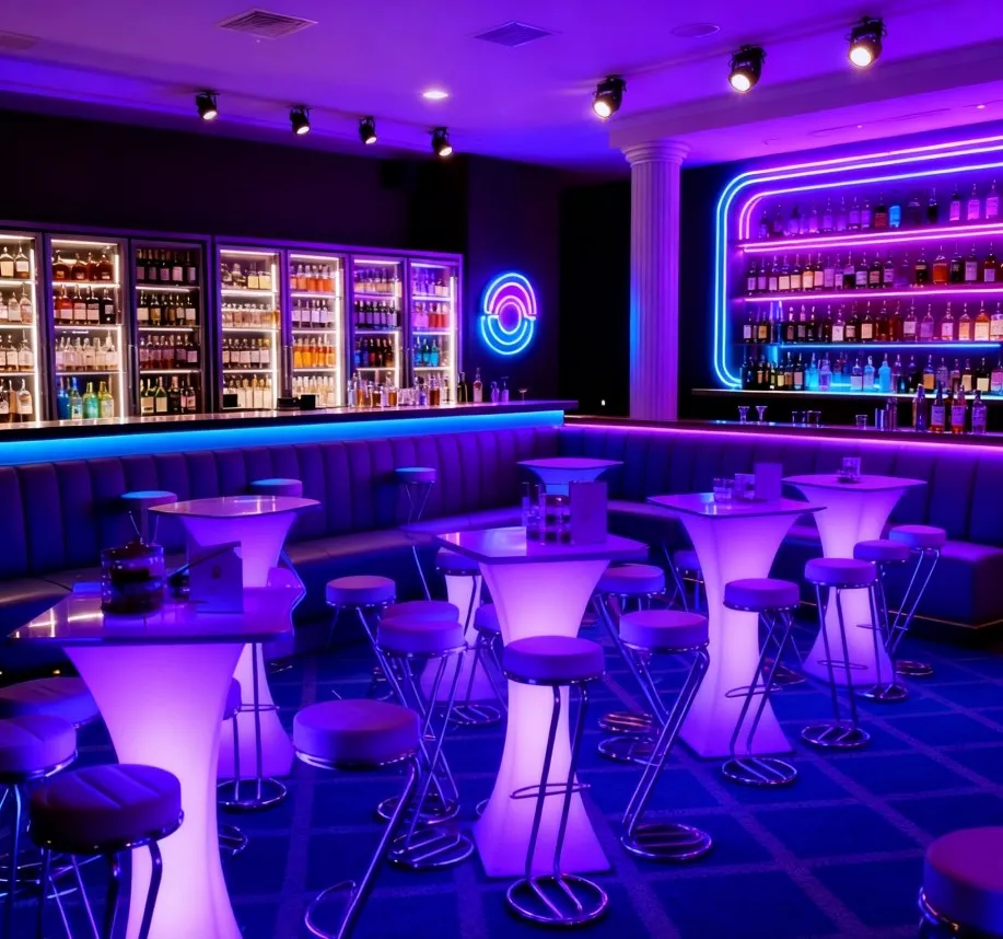 It adopts a wireless charging design, with a battery life of 8-12 hours after 4 hours of charging, without the need for an external power source; IP65 waterproof and anti drop shell, it can be used stably in outdoor rainy days, by the pool, or indoor parties. It is not only a practical coffee table/high legged table, but also a decorative ornament with eye-catching properties, easily adapting to the needs of multiple scenarios.