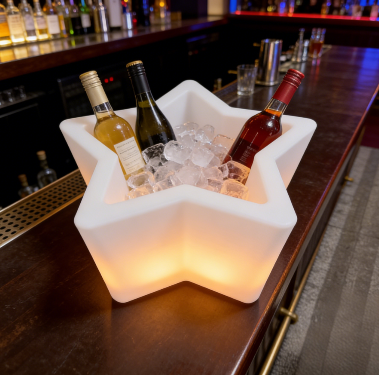 - Mall display cabinets: Showcase beverages, wines, or gift sets with the glowing star ice bucket—attracts customer attention and enhances product presentation.