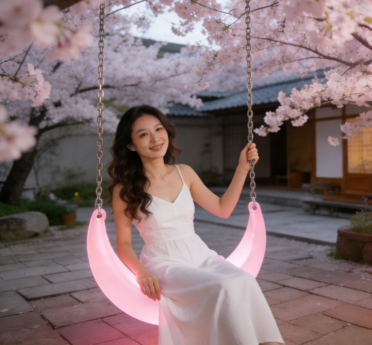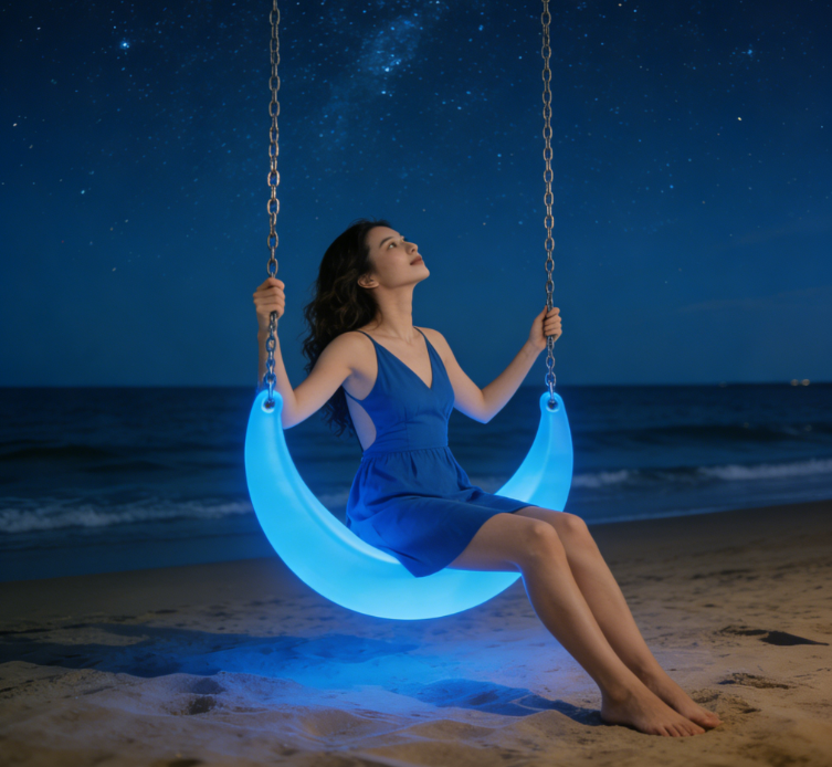 This luminous swing LED moon chair offers two size options, the large size is suitable for outdoor courtyards and commercial spaces, while the small size is more suitable for compact areas such as indoor bedrooms and balconies, meeting different spatial needs. Built in high brightness LED light group, supporting dynamic modes such as RGB full-color light switching, gradient/breathing, etc. The light is soft and not dazzling, and when lit up at night, it looks like a floating light and shadow device; Paired with adjustable suspension chains and adaptive brackets, it can be hung and installed in courtyards and terraces, as well as independently placed with floor stands, making it a practical tool for creating a relaxed and commercial atmosphere in homes and commercial settings.