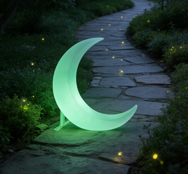 This luminous swing LED moon chair is a creative item that combines "leisure experience+atmosphere decoration". It is designed with a smooth semi-circular arc shape that conforms to ergonomics. The main body is made of food grade frosted PE material, which has a delicate touch and no odor. The surface is smooth and angular, balancing safety and comfort.