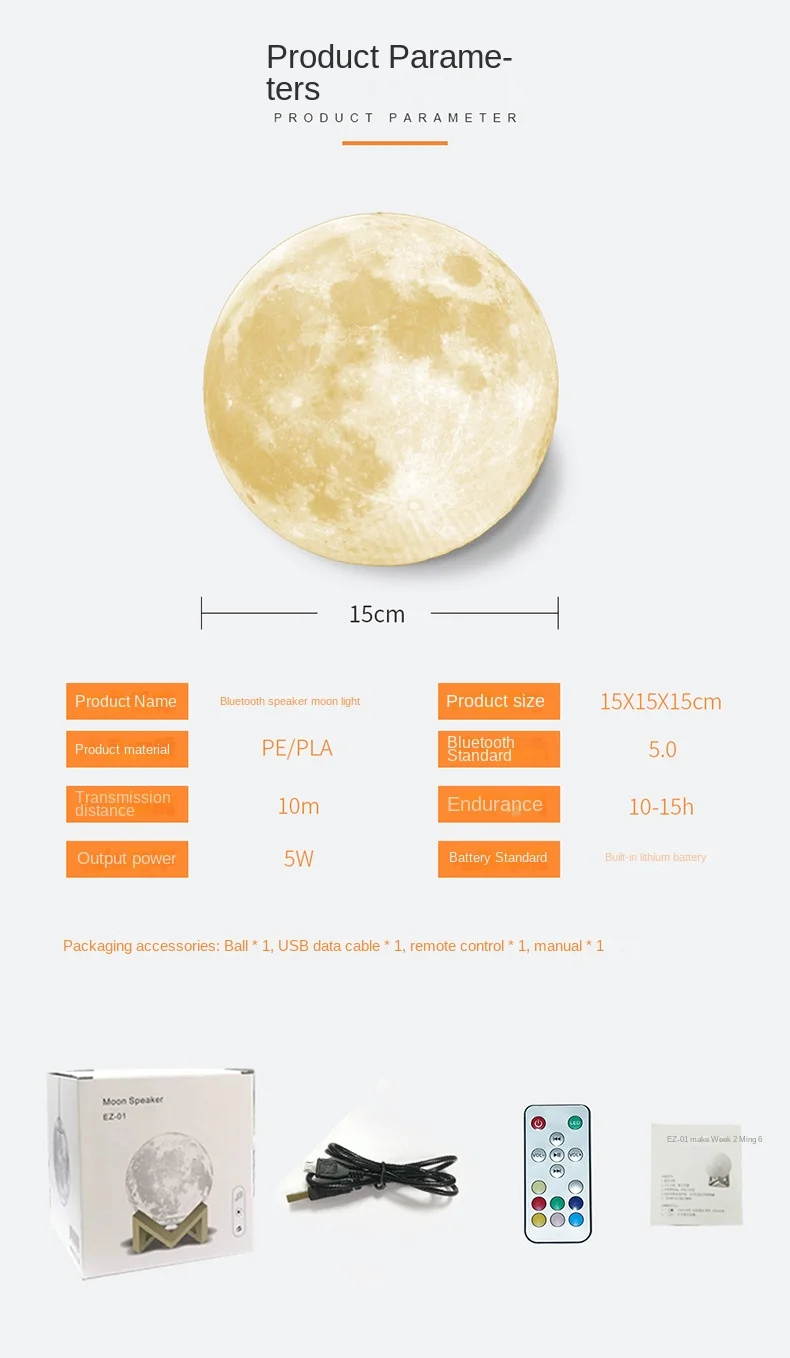 Kuqing manufacturers directly supply Bluetooth speaker moon lamp bedroom bedside lamp charging intelligent remote control 3D printing moon lamp