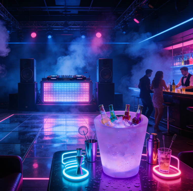 This portable LED ice bucket is a gathering artifact that combines atmosphere creation and practical cooling protection. It can not only lock in cold and fresh drinks for a long time, but also instantly fill the scene with colorful lights, turning ordinary gatherings into high-quality leisure venues. It is an essential item for bars, camping, and parties