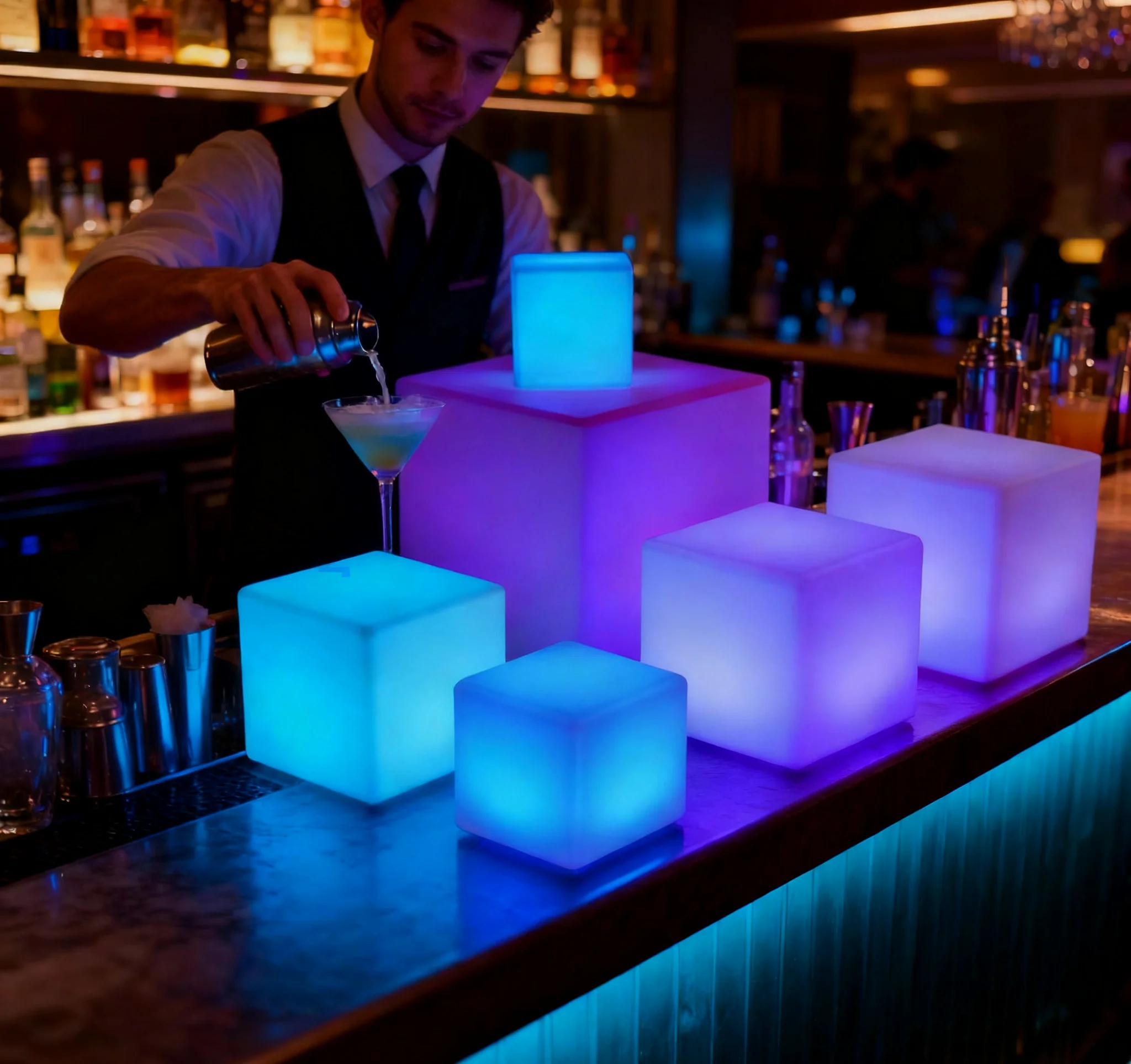 Glow Modern Eco-Friendly Water Resistant Outdoor LED Bar Table and Chairs Furniture for Party and Event Use