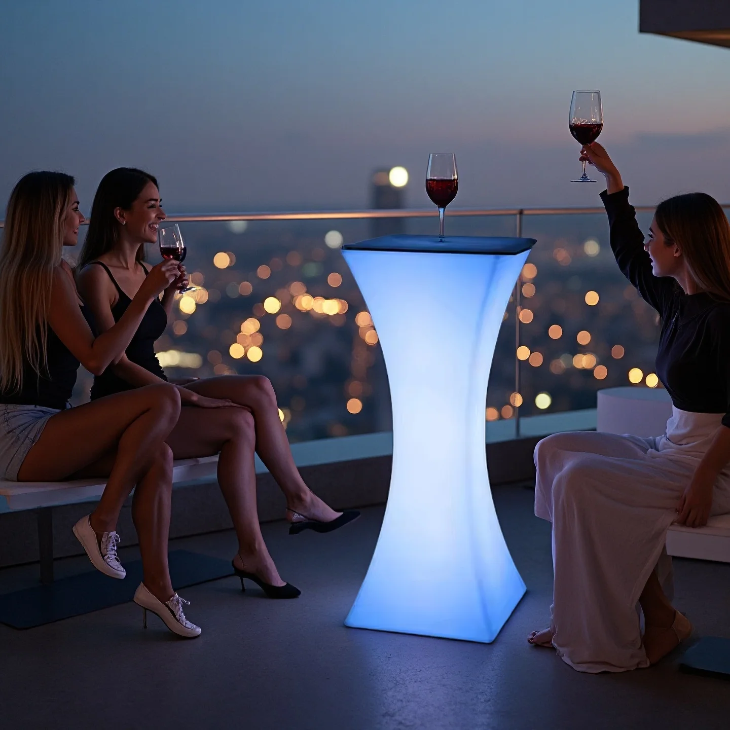 It adopts a wireless charging design, with a battery life of 8-12 hours after 4 hours of charging, without the need for an external power source; IP65 waterproof and anti drop shell, it can be used stably in outdoor rainy days, by the pool, or indoor parties. It is not only a practical coffee table/high legged table, but also a decorative ornament with eye-catching properties, easily adapting to the needs of multiple scenarios.